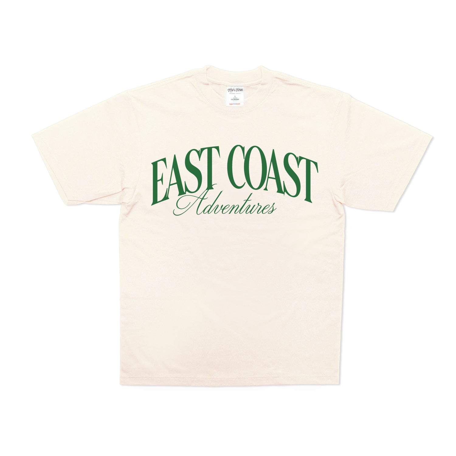 East Coast Adventures Tee. Celebrating the east coast, from the coastlines to the mountain tops. Featuring hand-drawn stamp illustrations that pay homage to the East lifestyle —from lush forests and winding rivers to hiking, camping, and sailing.