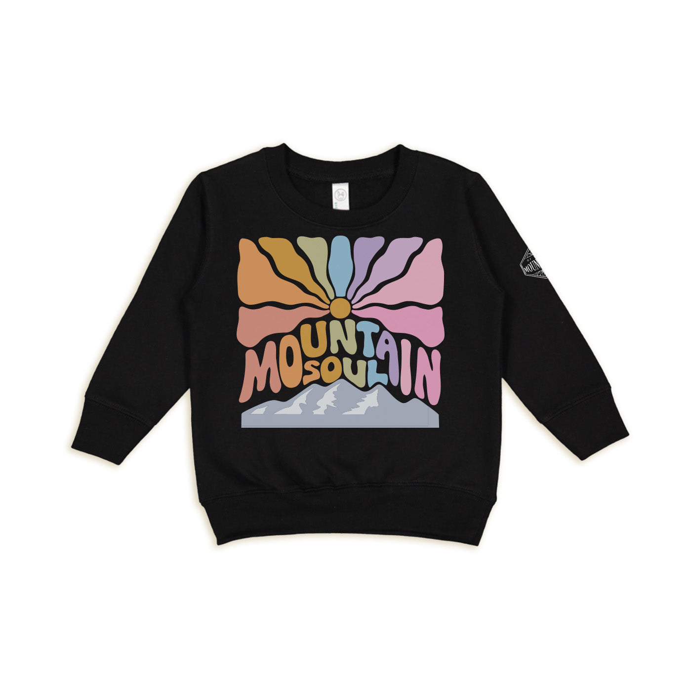 Mountain Soul Toddler Crewneck Sweatshirt. This crewneck sweatshirt is cut from soft cotton and ready to wear in Black.