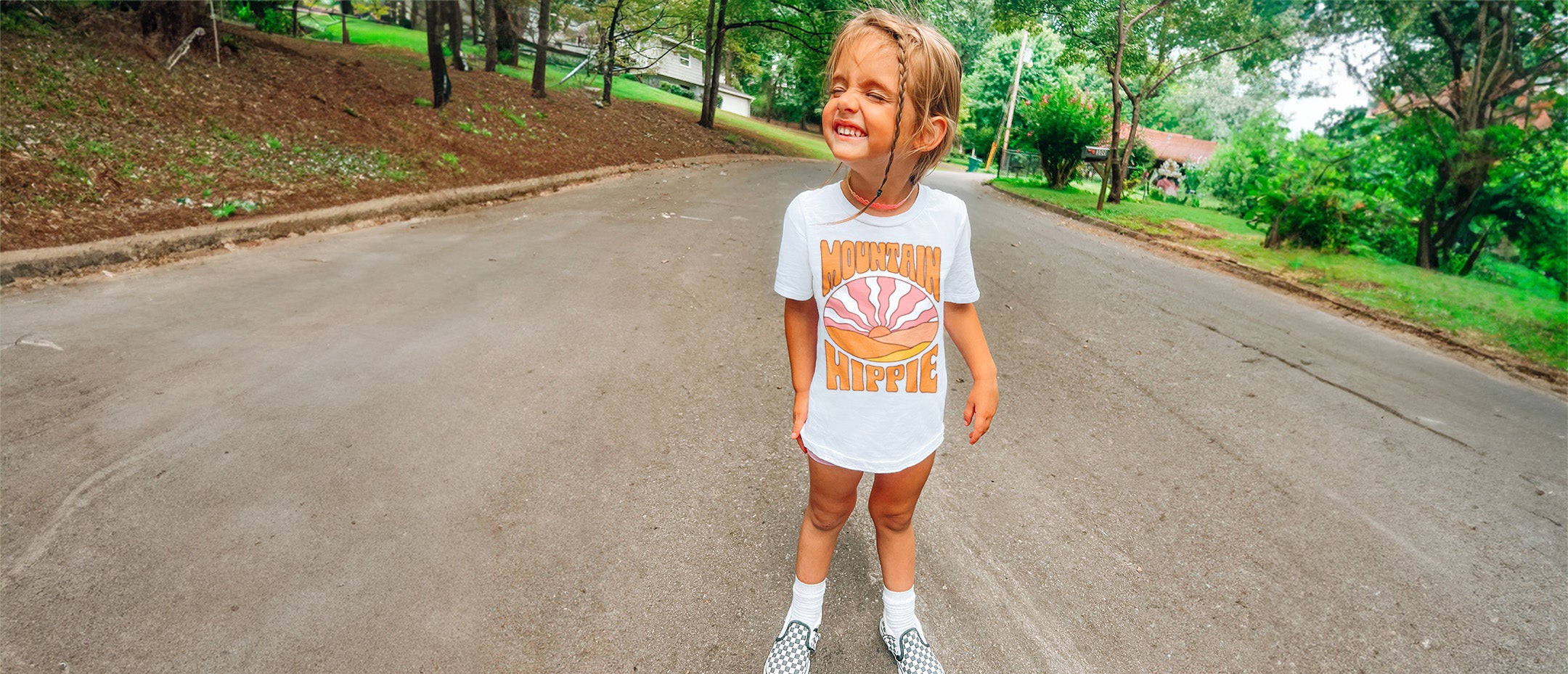 Research shows when kids spend time outdoors they are happier, healthier, smarter, & more creative. From climbing mountains to backyard adventures, Nature is where memories are made, friendships are strengthened, and a sense of wonder is nurtured. Let the sun hit their face & watch them run wild in our outdoor inspired designs. Join us on our mission to move childhood back outdoors.